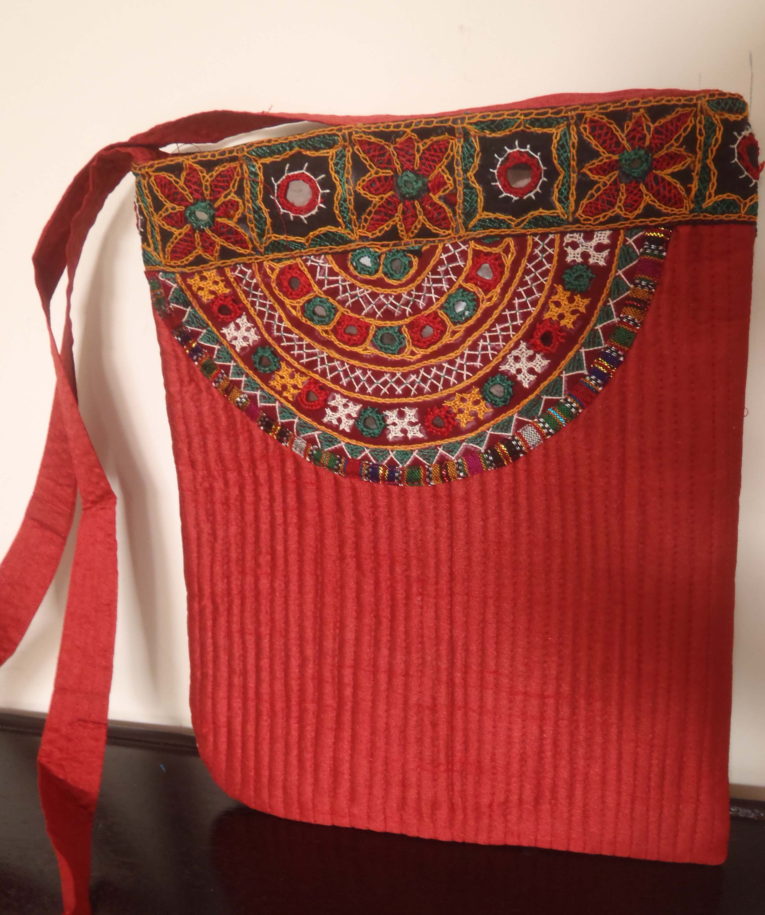 An asymmetrically embroidered iPad sleeve, this sling bag will set you apart from the crowd. Hand embroidered by Gujarati and Rajasthani artisans, this iPad sleeve is a bright, multipurpose sling bag which can bring cheer to your casual and formal wear.